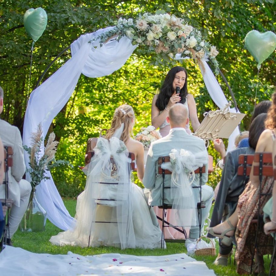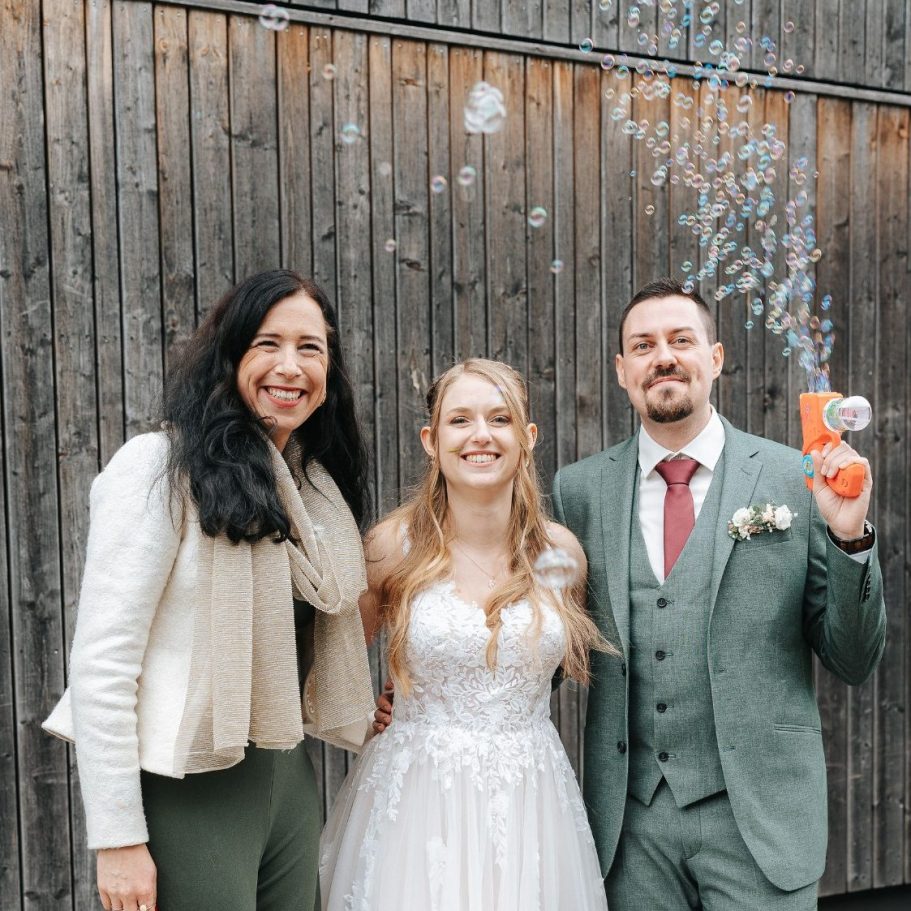 Die Traurede, die sie für uns geschrieben hat, war einfach perfekt. Sie hat sich Zeit genommen, uns kennenzulernen, war ganz bei uns und ist mit uns durch diesen besonderen Tag gegangen. Sie macht nicht einfach „ihren Job“ und geht wieder, sie wird ein Teil der Trauung – und das auf eine so herzliche, ehrliche und schöne Weise, dass man das Gefühl hat, sie gehört längst zur Familie.